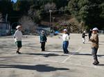 全校の子供たちが縄跳びを持って運動場に集まりました。全員で跳んだり、