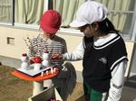 日中、暖かな日差しの中、児童玄関を見ると・・・。