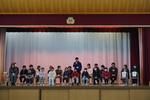 川中小の皆さんが温かく出迎えてくれ、下山小の児童は舞台の上で一人ずつ自己紹介をしました。