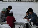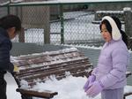 児童たちは思い思いに雪を集めて、雪だるまを作り、楽しい時を過ごしました。