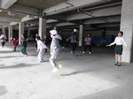 今日のぴょんぴょんタイムは運動場が使えないので、体育館の下で行いました。