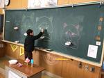 今日は節分。教室をのぞくと、黒板に鬼の絵が描いてありました。