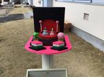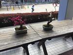 地域の方がお世話をしてくださる盆栽。今は、濃いピンク色と白の