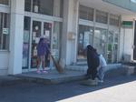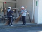ほうきを使ってごみを集めたり、草をとったりして、