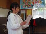 代表スピーチでは、運動会の一輪車やまとめテストの漢字など自分が頑張ったことやできるようになったことを話していました。
