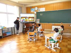 1年生は担任の先生の質問にしっかり挙手をして答えることができました。