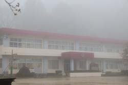 降雨の影響もあって、数メートル先が見づらい濃霧に包まれています。
