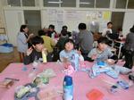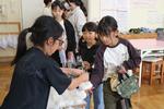 各児童は、炊きあがったお米を梅干しやふりかけや唐揚げなどを具にして、おにぎりを握りました。