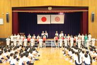 今週のキッズデイズ(10月1・2日)に、部活動の球技大会があります。常磐小はソフト部、サッカー部、バレー部が出場します。また、音楽部は、10月18日(土)に「岡崎のハーモニー」に参加します。今日は、全校でエールを送るために、部活動激励会を行いました。