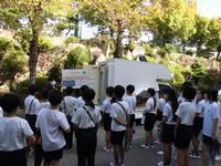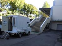 仮設トイレと車両が一体となっている災害用トイレ(トイレカー)を見学しました。避難所生活における衛生的なトイレ環境を確保するだけでなく、自走式のため、車両が入れる場所であればどこでも使用できるそうです。