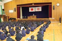 校長先生のお話や代表の児童のスピーチを、背筋を伸ばして姿勢よく聞く姿が見られました。代表児童の話を聞いて、2学期の行事や学習を振り返ることができたと思います。