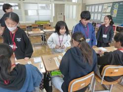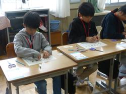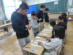 4年生が外国語活動の授業で、文房具のお店屋さんごっこを行いました。クラスをお店屋さんグループとお客さんグループに分け、文房具の絵のかかれたカードの売買をします。「Do you have pencils?」「Yes,I do.」「How many?」「Two please.」というような英語の会話をします。子供たちは大喜びで、いろいろな文房具の売買を英語を使ってしていました。お店屋さんとお客さんは途中で交代し、どちらの言い方にも慣れるようにしました。最後には、自分が飼ったものをカードに貼り、「I have two pencils and three ・・・」と確認していました。4年生でもごっこ遊びを取り入れた英会話はとても盛り上がることが分かったので、また、取り入れていきたいです。