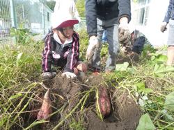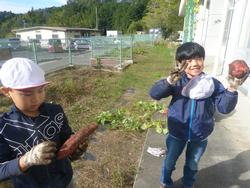 1、2年生が学年園で育てていたさつまいも掘りをしました。子供たちは、暑い夏の日も毎日欠かさず水やりをしたり、雑草を抜いたりして世話を続けてきました。その甲斐あって大きなさつまいもがたくさん収穫でき、子供たちは大喜びでした。がんばってお世話をした分、収穫の喜びも大きかったと思います。