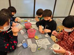 子供たちは、午後、東大寺大仏殿を見学し、社会科の授業で学んだ大仏の大きさを体感しました。その後、再び近鉄特急で京都へ戻り、あかねや京都タワーサンド店で絵付け体験をしました。思い思いに筆でマグカップに絵や言葉を丁寧に描きました。修学旅行のよい記念になったと思います。そして午後5時30分頃、全員元気に今日宿泊するホテルに到着しました。夕食後は、東寺のライトアップを見学する予定です。素敵な京都の夜の思い出ができそうですね。