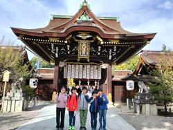 子供たちはジャンボタクシーで金閣寺、北野天満宮、伏見稲荷と歴史的建造物を見学しました。金閣寺では、また、外国の方に話しかけるなど意欲的に活動できました。北野天満宮では、学問の神様、菅原道真公をお祀りしている神社ということもあり、頭がよくなるようお願いしました。最後の目的地である伏見稲荷を見学し、現在は、京都駅を新幹線で出発したところです。三河安城駅到着が18時19分、学校着は19時30分の予定です。5人仲良く元気で外国の方にも積極的に関われたよい修学旅行になったようです。明日、下級生に土産話をしてあげてほしいです。
