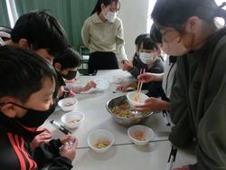 5時間目に岡崎市北部給食センターの栄養教諭を講師として招いて、全校児童で食育の授業を行いました。「食べて元気な体づくり~運動する体に大切な栄養素ってなんだろう~ カルシウムとビタミン 」について学習しました。授業では、なかよし班で協力して元気サラダを作りました。ビタミンいっぱいの野菜が入った元気サラダで冬の寒さに負けない元気な体づくりをしてほしいです。