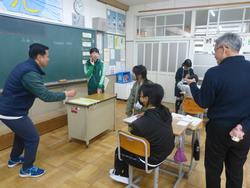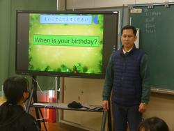 5年生が、外国語の授業で2学期の復習をクイズ形式で行いました。子供たちは、2人ずつ3チームに分かれてクイズの得点を争います。チーム名はチームごとに相談してクリスマスにちなんだ「サンタ」、「ジングルベル」、「トナカイツリー」に決まりました。子供たちは「When is your birthday?」や「What do you want for Christmas?」などの英語の質問にチームで相談して答えていました。結果は、何と引き分け。みんな笑顔で楽しい2学期の締めくくりができました。