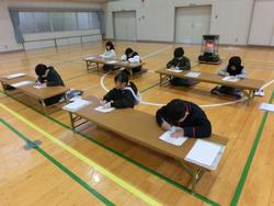 1・2時間目に・書き初め大会が行われました。本校では、全校児童が体育館のフロアに座って一斉に書き初めを行います。どの児童もお手本をよく見ながら、集中して取り組むことができました。作品は、今月の21日(水)~24日(土)までの校内書き初め展で展示されます。24日(土)のふれあい授業参観の折にぜひご覧ください。