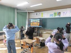 3年生が、外国語活動の授業で「Head、Shoulders、Knees and Toes」という歌を歌いながら、歌に合わせて「head(頭)」、「shoulders(肩)」、「knees(ひざ)」、「toes(つま先)」を順番に触っていくというゲームをしました。はじめは、曲のテンポがゆっくりで余裕をもってタッチしていましたが、だんだんテンポが上がっていき、一生懸命手を動かしていました。体を動かしながら楽しく体の部位の言い方を覚えることができました。
