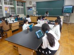 理科室をのぞいてみると、3・4年生が合同で理科の授業をしていました。子供たちはタブレットを使って「水のすがたと温度」の単元の復習をしていました。タブレットの文章の四角に当てはまる言葉を考えて書くのですが、書きにくいと拡大して書くなどタブレットの扱い方が以前と比べてだいぶ上達していました。タブレットなどのデジタル機器は、子供たちの方が覚えるのが早いなあと改めて感じました。しっかりと覚えて進級してほしいです。