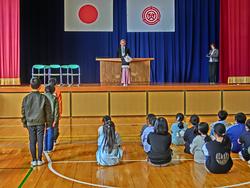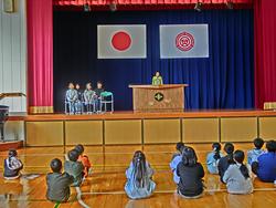 校長先生から修了証をいただいた後、各学年代表児童が今年の反省と来年の頑張りたいことを発表しました。今年の反省では体育のとび箱を跳んだこと、クラブの鼓笛練習、6年生を送る会の詩の朗読と合唱など頑張ったことを全校児童の前で一生懸命に話すことができました。発表後、全校児童が校歌を元気よく歌うことができました。4月の始業式でみんなに会えることをたのしみにしています。