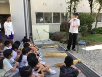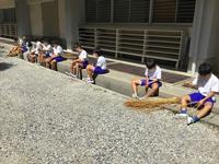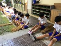 劇団の都合で観劇会が延期になったため、急遽5、6年生で、「すがい縄」づくりが行われました。「すがい縄」は、稲刈りの後、稲を束ねるひものことです。「すがい縄」作り名人の指導の下に、さっそく活動開始です。昨年作ってくれた6年生が、今年は、5年生に教えながらの参加です。昨年400本作りましたが、足りなかったので、今年は500本が目標です。さすがに手際のいい6年生を模範に、5年生もどんどんうまくなっていきました。今年もよい伝統が受け継がれました。