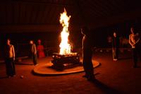 自分の班のカレーに夢中になっていたため、仕事であるキャンプファイヤーの準備に行くのを忘れていました。あわてて、太陽の広場に向かいますが、すでにきれいに準備完了。校務員さんと山の指導員さんに、感謝感謝です。5年生のテーマ「心をひきしめ、仲間と助け合おう」を思い出し、心をひきしめました。次の仕事は、「山の神」への変身です。毎年思うのですが、なぜ常磐南の「火の神」の衣装は赤なのでしょうか?今年も初めて見る方々に、「赤なんですね」と驚かれ、胸を張るべきか、恥ずかしがるべきか、常磐南の「火の神」はスペシャルです。