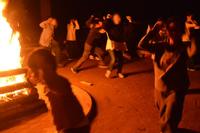 楽しい時間はあっという間に過ぎるもの、気が付けば、井桁の火も小さくなっていました。最後に、「火の神」から4人の5年生に、「友情」「希望」「思いやり」「協力」の火が与えられました。それぞれに誓いの言葉を述べた4人は、もらった火を使って、火文字に点火をします。浮かび上がった文字は「なかま」。5年生31人が、これからもずっと仲間であり続けられるよう、みんなで心をひとつにしました。