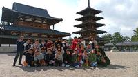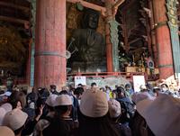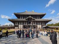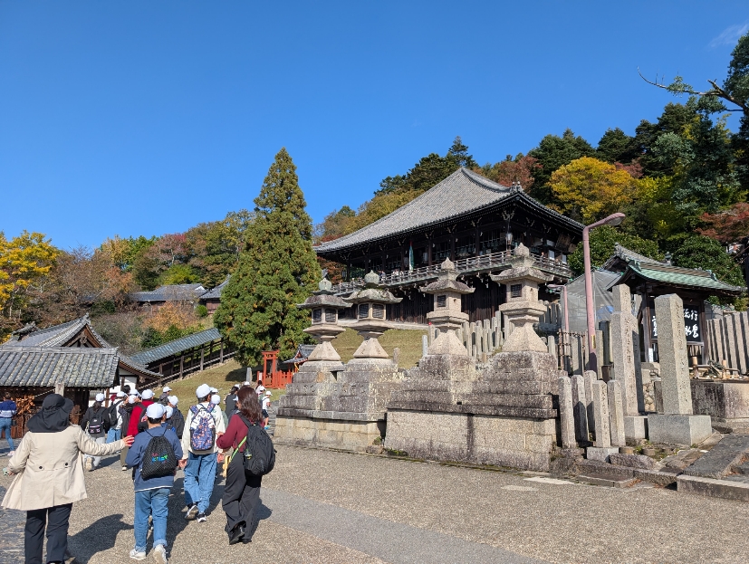 素晴らしい秋空の下、皆、法隆寺の厳かさに触れ感動し、東大寺の大仏の大きさに驚いていました。鼻の穴の大きさの柱の穴も通りました。