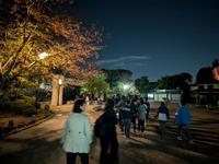 今年の夜の楽しみは、夜間散策。過去2年は舞妓さん体験だっただけに、新鮮で楽しみにしていました。和順会館を出発し、円山公園を抜けて、八坂神社へ。八坂神社のライトアップ?はとてもきれいで、見とれてしまいました。個人的には、参道に並んでいた屋台にも見とれてしまいました。竹の子焼きやカニ身串など、見たことのない屋台が多く、思わず吸い寄せられていました。西楼門を出て、祇園の街並みを横目に、高台寺に向かいます。月曜の19時過ぎでしたが、祇園はたいそうな賑わいでした。時間の都合で、高台寺の夜間特別拝観はできませんでしたが、台所坂を上るだけでも素敵な雰囲気を楽しむことができました。