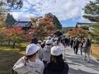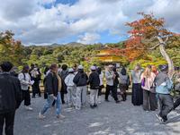 そんなこんなでもなんとか全員無事に「白かべ通り」に集合し、最後の見学地金閣寺に向かいました。金閣寺も、昨年より人が少ないかなと思ったものの、意外に多かったのが高校生の修学旅行?生。外国人と高校生にもまれての見学になりました。毎年書いている通り、今年も金閣寺は金閣寺でした。あの金色に光る荘厳さは、他に類を見ない日本が誇る歴史遺産です。今年も見ることができて心が洗われました。