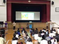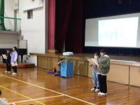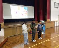 図書委員会によるビブリオバトルが行われました。本を3冊紹介し、読みたいと思った本に投票してもらいます。紹介してくれた本は、『パンどろぼうとなぞのフランスパン』『バムとケロのにちようび』『アザラシのアニュー』の3冊でした。どれもワクワクする紹介で、全部読みたくなりました。最後、全校のみんなに、読みたくなった本に投票してもらいました。どんな結果になるのか楽しみです。