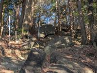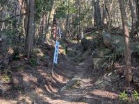 参道の脇に並んだ幟に導かれるように、ワクワクと階段を上っていきます。ところが、しばらくすると階段がなくなり、「参道はどこ?」という状態に。それでも、幟はあるので、それを目印に、進んでいきます。見上げるような上り坂、急なだけではなく、足元も、むき出しの木の根や岩で、運動靴じゃないととても登れません。最高潮だった気分は一気に下がり、「これが表?」と不安になります。