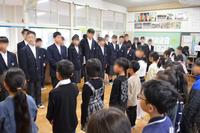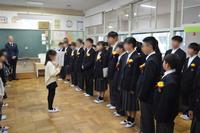 1~3年生が、6年生とのお別れ式に臨みました。前日からの雨の影響で、グランドか使えず、教室でのお別れ式になりました。1年生から胸花を渡してもらい、胸につける6年生。中学校の制服と相まって、とても凛々しい姿になりました。3年生のお別れの言葉、それに応える6年生のお礼の言葉。みんなを代表する2人の言葉がとても心に沁みました。最後は校歌を歌ってお別れです。教室の中ということで、声がよく響き、一人一人の思いがよく伝わる感動的なお別れ式になりました。