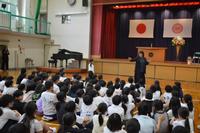 退任式が行われました。今年度は奥脇先生一人のための退任式です。とこはの子たちへの愛情あふれる指導、運動会『御神楽』の創作・指導、日々の子ども達への支援などなど、常磐南小学校のために、たくさんのご尽力をいただいたこと、どれほど感謝しても足りないくらいです。2~6年生全員で、精一杯ありがとうを伝えました。