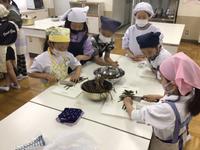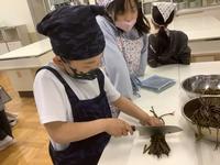 4年生が中心となって、採取してきたわらびの調理をしました。慣れない包丁を使っての調理に、見ている方はハラハラドキドキでした。それでも、大量にあったわらびが、食べやすいようにどんどん切られていき、無事全部のわらびを調理することができました。小林さんからいただいた竹の子やその他の材料も加えて煮込み、わらびご飯の具材の完成です。給食の時間、わらびご飯を嬉しそうにほおばる3・4年生の笑顔が素敵でした。