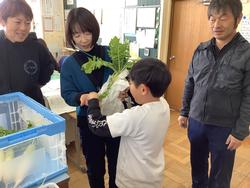 2学期にひまわり組・ふれあい組で愛情をこめて育ててきた大根を職員室にいる先生方に販売しました。大根の大きさや出来栄えによってみんなで値段を考えました。自分達で声をかけにいったり、丁寧に袋にいれて手渡ししたりすることができました。次回は育てた大根でおでんを作る計画です。子ども達は、早くも楽しみな様子でした。