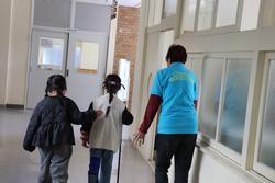 3~6年生を対象に、福祉実践教室を開催しました。3年生は高齢者疑似体験、4年生は車椅子体験、5年生は視覚障がい者ガイド体験、6年生は要約筆記体験を行いました。高齢者疑似体験をした3年生児童は「体が重くて、目がよく見えない。でも階段でペアの子に声をかけてもらったら上がりやすかった。」、また4年生児童は「マットの上だと車いすが重くて、思ったように進まないことが分かった。」と感想を述べていました。これらの体験を通し、五感を使って感じたことは、今後いろいろな相手の立場を理解するときに手助けになっていくのではないかと思います。