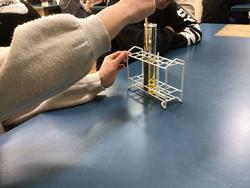 お茶の入った試験管に薬を入れた瞬間液体が真っ黒に変化しました。