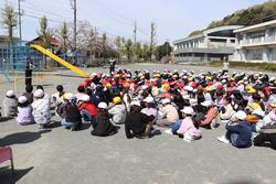 地震が起きた時のシェイクアウトを練習や火災によるけむりから守る行動を訓練しました。