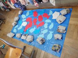 5年生の授業では、学級内のつながりを深めるために「笑フェス」と題して、会社活動のメンバーでブースを出店するフェスティバルの練習を行いました。ブースを訪れる人がより楽しめる出し物にするために、子供たち同士でアドバイスを送り合い、よりよいフェスティバルにするために会社内で話し合う姿に、自立する子供たちの姿を見ることができました。