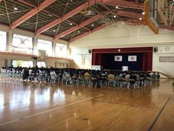 4~6年生が体育館で、金子みすゞ館館長さんの講演を聞きました。金子みすゞさんの詩を使いながら、友達を思いやる心や言葉の大切さなどについての話を聞きました。これからも生活に生かしていきたいですね。(飯塚・西澤)