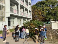 校庭のミカンが熟してきたので、各学年ごとに収穫を行います。今日は3年生が収穫を行い、大きさや色づきを見ながら一生懸命収穫する姿が見られました。(金子・望田)