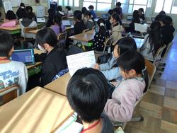 本日、4年生が総合的な学習の時間に学んだことを3年生に向けて発表しました。