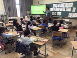 2年生の外国語活動。今日は、「BINGO」の歌を歌って、楽しくスタート。