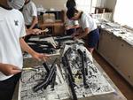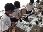 6年生のあるクラスでは、学芸会で使用する小道具の制作をしました。タブレットで作りたいものを調べて、黙々と作る姿や、複雑な形を作るために2人で協力する姿が見られました。
