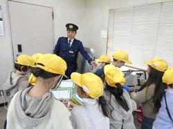 2年生の生活科の授業で、学区探検に行きました。矢作交番では警察の仕事の話を聞いたり、持ち物を紹介してもらったりしました。みんなのくらしを守ってくれていることがわかりました。