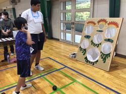 山中小の子供たちは、他校の児童生徒に楽しんでもらうために、水族館をテーマにした輪投げをみんなで作成しました。