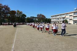さわやかタイムの時間に、全校児童で5分間走っています。