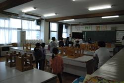 今日は午後から就学時健康診断があり、来年度入学予定の1年生30名が健康診断のために来校しました。体育館や、検診や検査で使用する教室は、事前に5年生の児童が準備しました。30名の児童が4班に分かれて、誘導係の児童に引率されて検診や検査を受けました。